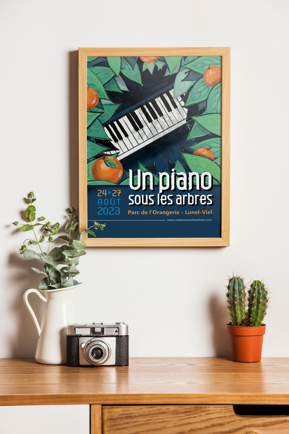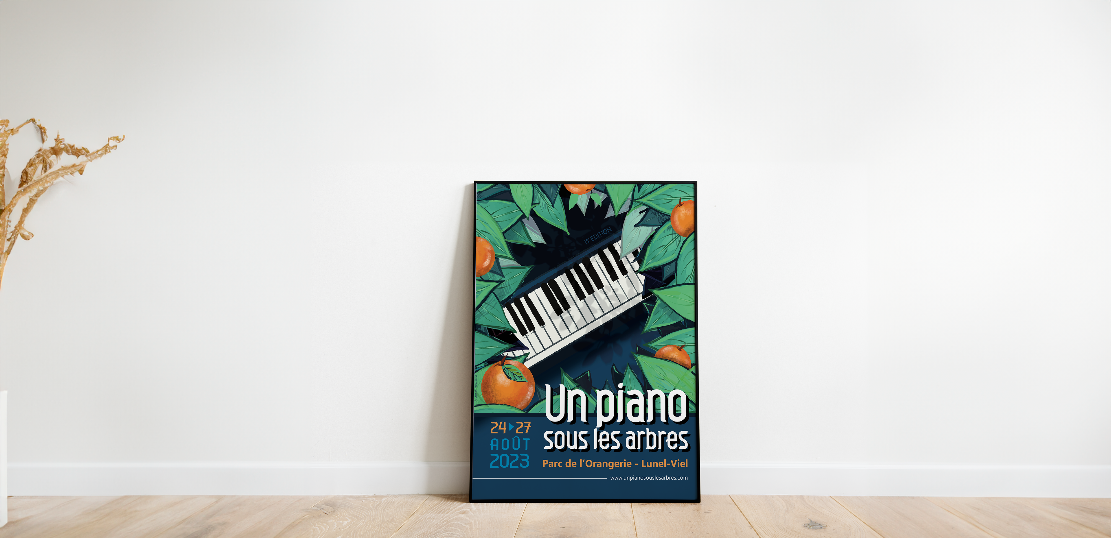 Création d'une affiche pour la 15° édition du festival de musique "Un Piano sous les Arbres" organisé par la commune de Lunel-Viel